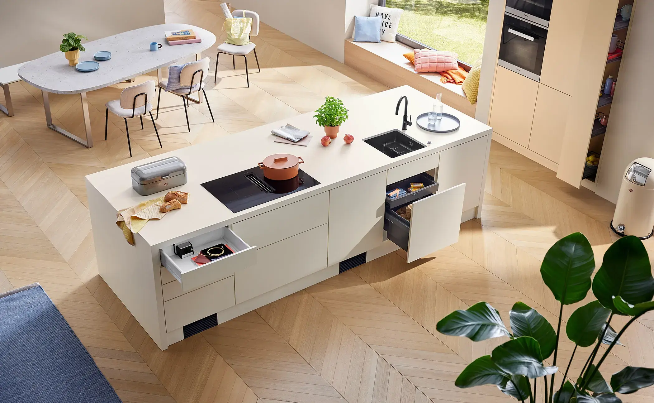 Küchengestaltung verlangt Flexibilität, denn in der Küche muss vieles möglich sein: kurzes Frühstück, getakteter Snack, ausgedehntes Essen, Zusammensitzen oder auch konzentriertes Arbeiten. Immer eingebunden sind Stühle, Hocker und Tische. TABLON® bietet dafür eine Vielzahl von Ausstattungsvarianten und Kombinationsmöglichkeiten – und ist einfach unentbehrlich!